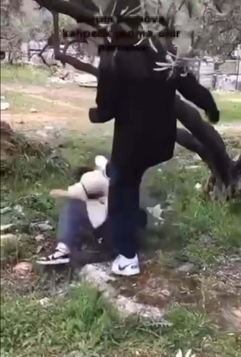 Görüntülerde, R.Ş.'nin bir süre konuştuğu D.D.'ye aniden yumruk atıp, saçından tuttuktan sonra diziyle yüzüne vurması ardından yere düşen D.D.'nin başına tekme attığı anlar yer aldı.