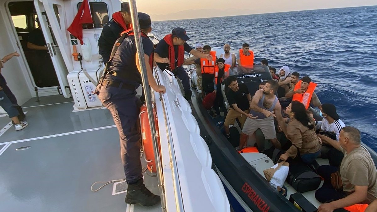 Marmaris ilçesi açıklarında içerisinde düzensiz göçmenlerin olduğu lastik bot, motor arızası yaşadı.