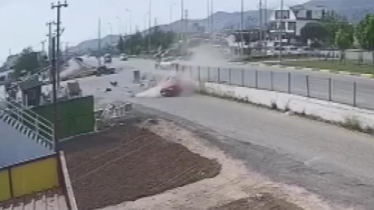 Muğla'nın Fethiye ilçesi Çamköy Mahallesi'nde Habibe Yakar Erdoğan yönetimindeki otomobil, arkasında römork bulunan otomobilin kavşaktan aniden yola çıkması nedeniyle kontrolden çıktı.