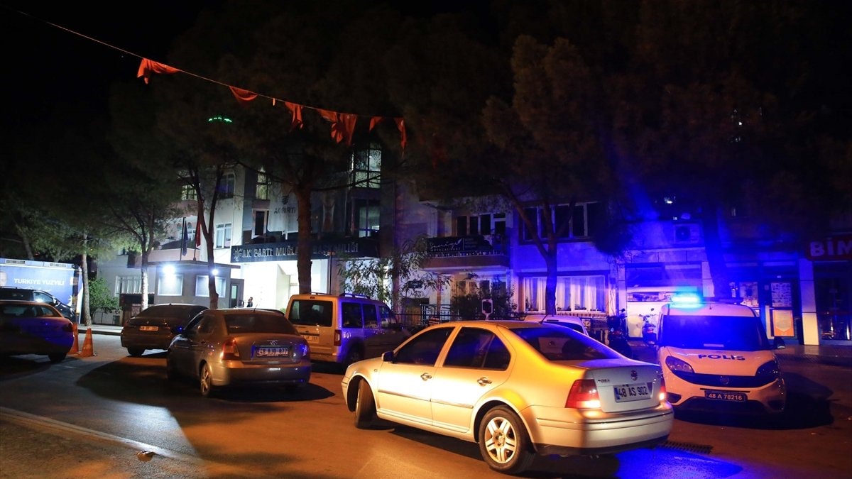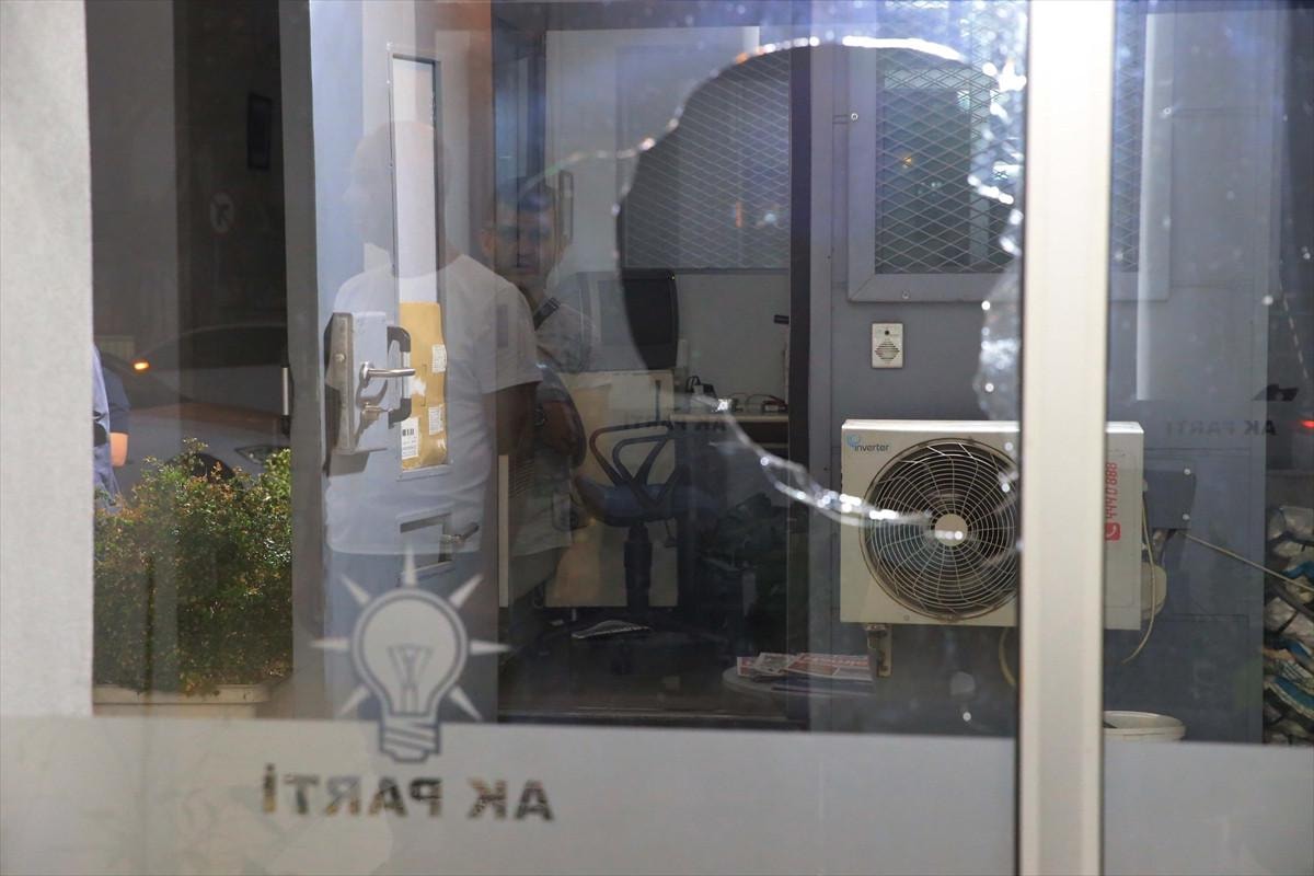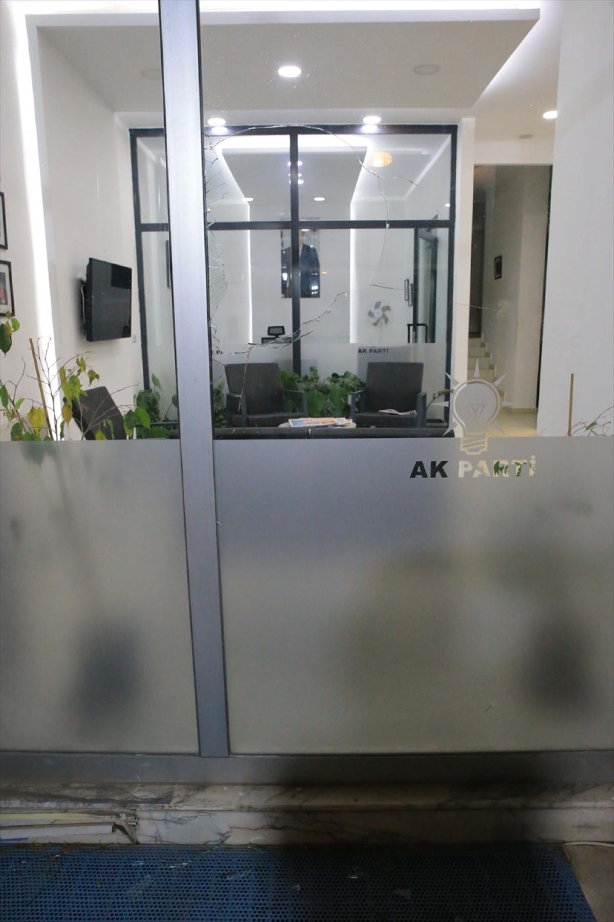 Muğla'nın Menteşe ilçesi Orhaniye Mahallesi'ndeki AK Parti İl Başkanlığı binasına gelen bir kişi elindeki taşı binanın girişinde bulunan cama attı.