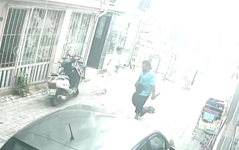 Öte yandan Köksal U.'nun olayın ardından elinde bıçakla apartmandan çıktığı ve motosikletine binerek kaçtığı anlar, yakındaki başka bir binanın güvenlik kamerasına yansıdı.