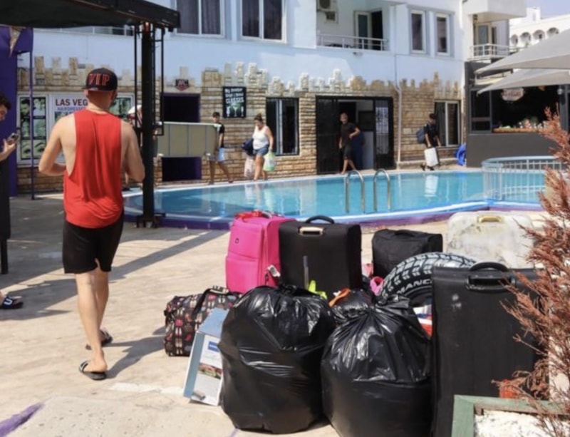 Hiçbir haberimiz olmadan bizi otelden çıkardılar ve buranın mahkemelik olduğunu söylediler. Yatacak yerimiz olmadığına bilmelerine rağmen çantalarımızla birlikte dışarda kaldık.