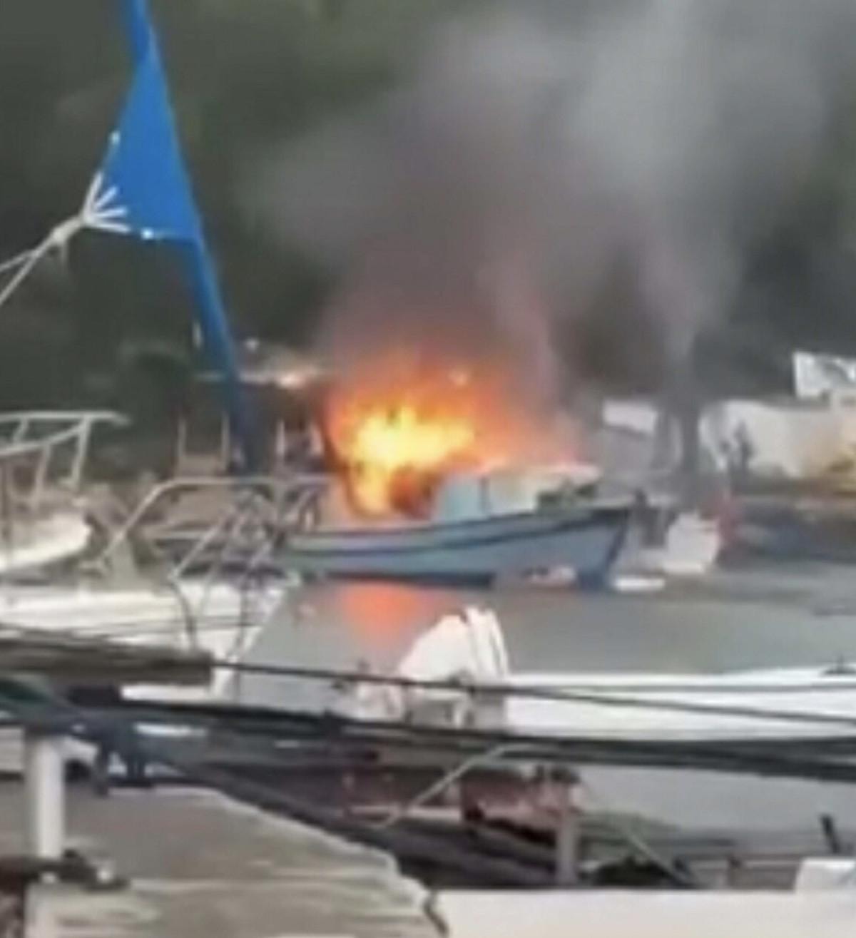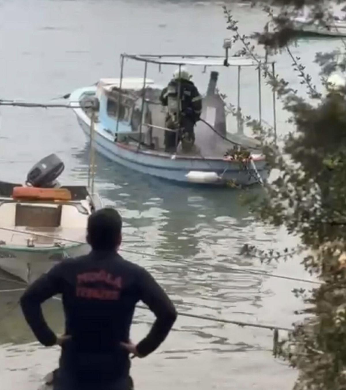 Koyda demirli, yaklaşık 5 metre uzunluğundaki ahşap balıkçı teknesinde bugün saat 10.30 sıralarında yangın çıktı.