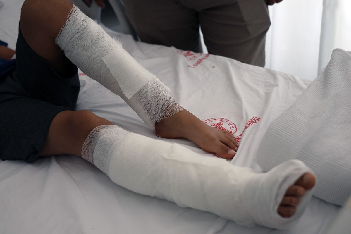Bacakları başıboş köpeklerden tarafından adeta yenilen küçük çocuğun, yürüyemeyecek hale geldi.