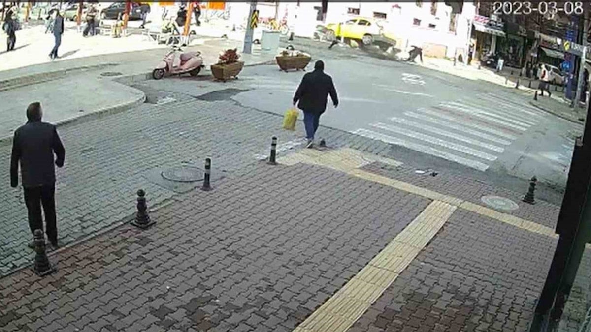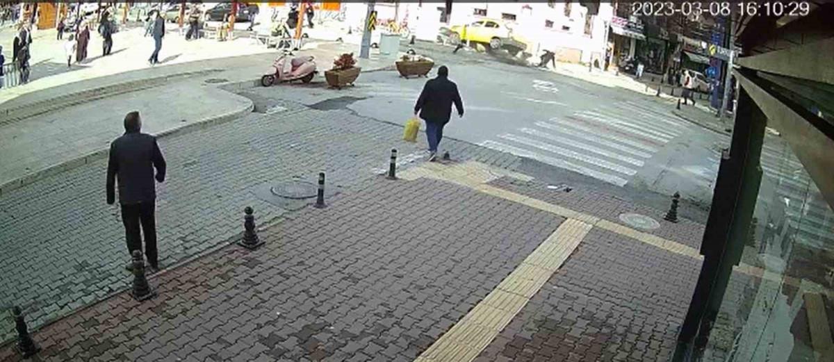 Sürücünün hakimiyetini kaybettiği taksi önce bir motosikletliye çarptı, ardından durdu.