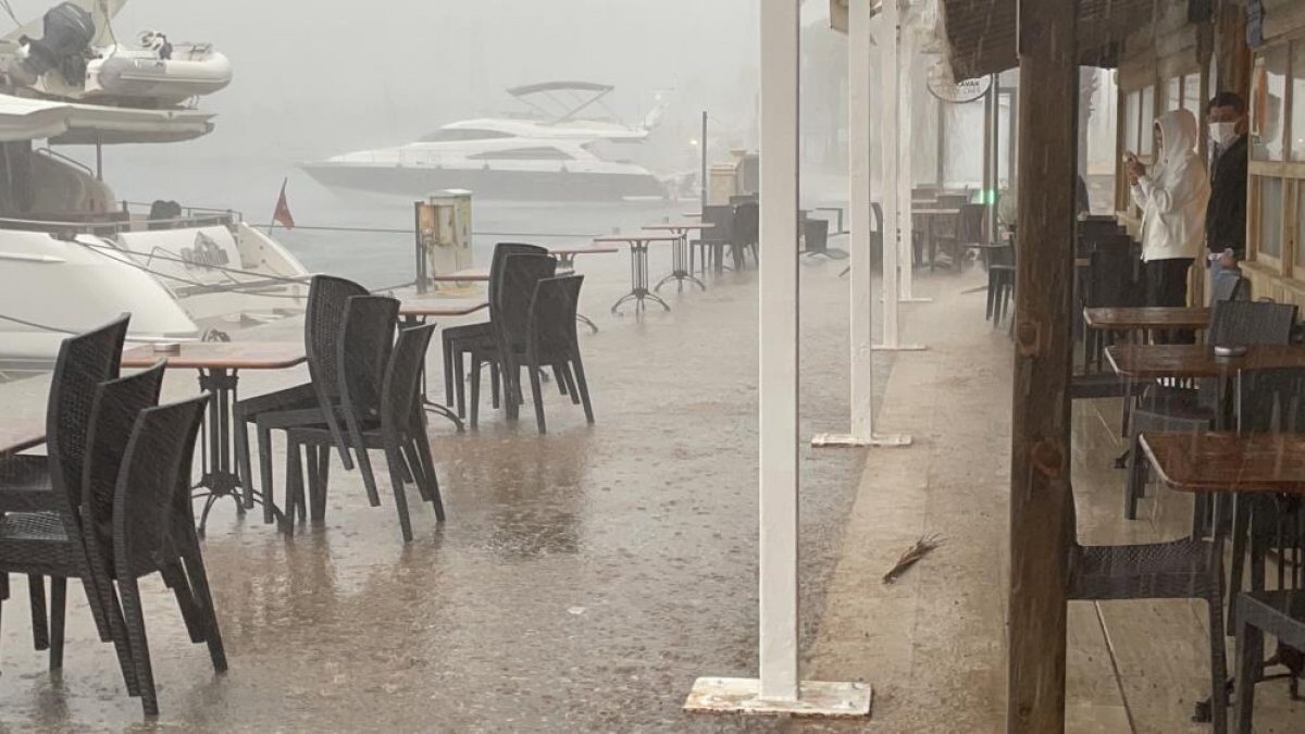 Muğla'nın Bodrum ilçesinde dün sabah saatlerinde başlayan şiddetli fırtına, ardından yerini şiddetli yağmura bıraktı.