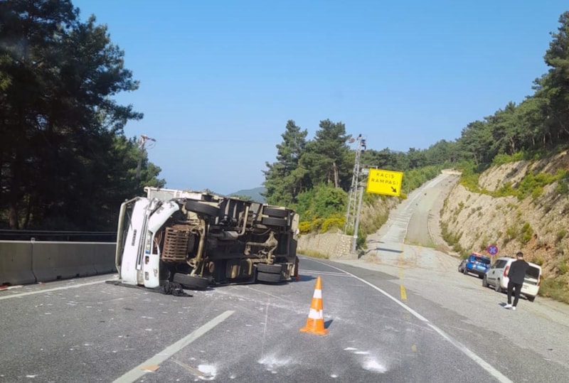 Sakartepe kaçış rampasından geçtiği sırada freni patlayan kamyon, önündeki araca arkadan çarparak su kanalına devrildi. Kazada1 kişi yaralandı.