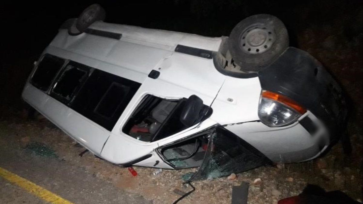Sürücüsü belirlenemeyen 17 PE 630 plakalı minibüs, kontrolden çıkarak yolun sol tarafına çarpınca ters döndü.