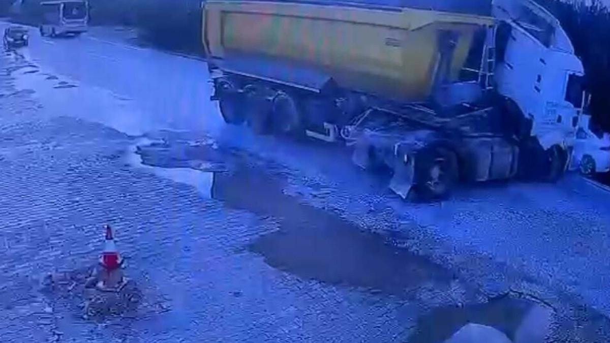 Muğla'nın Bodrum ilçesi Güvercinlik-Mumcular yolunda İdris K.’nin (55) kontrolünü yitirdiği hafriyat kamyonu karşı şeritten gelen Mehmet Alper Emiroğlu'nun kullandığı otomobil ile sürücüsünün ismi henüz öğrenilemeyen otomobile çarptı.