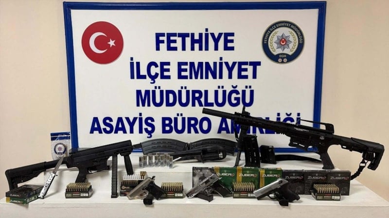Fethiye ilçesinde, Kadın Destek Uygulaması (KADES) ihbarı üzerine, operasyon yapılan evde çok sayıda silah, mühimmat ve uyuşturucu ele geçirildi. Eşini darbedip alıkoyduğu ileri sürülen Alman uyruklu G.P.F., gözaltına alındı.