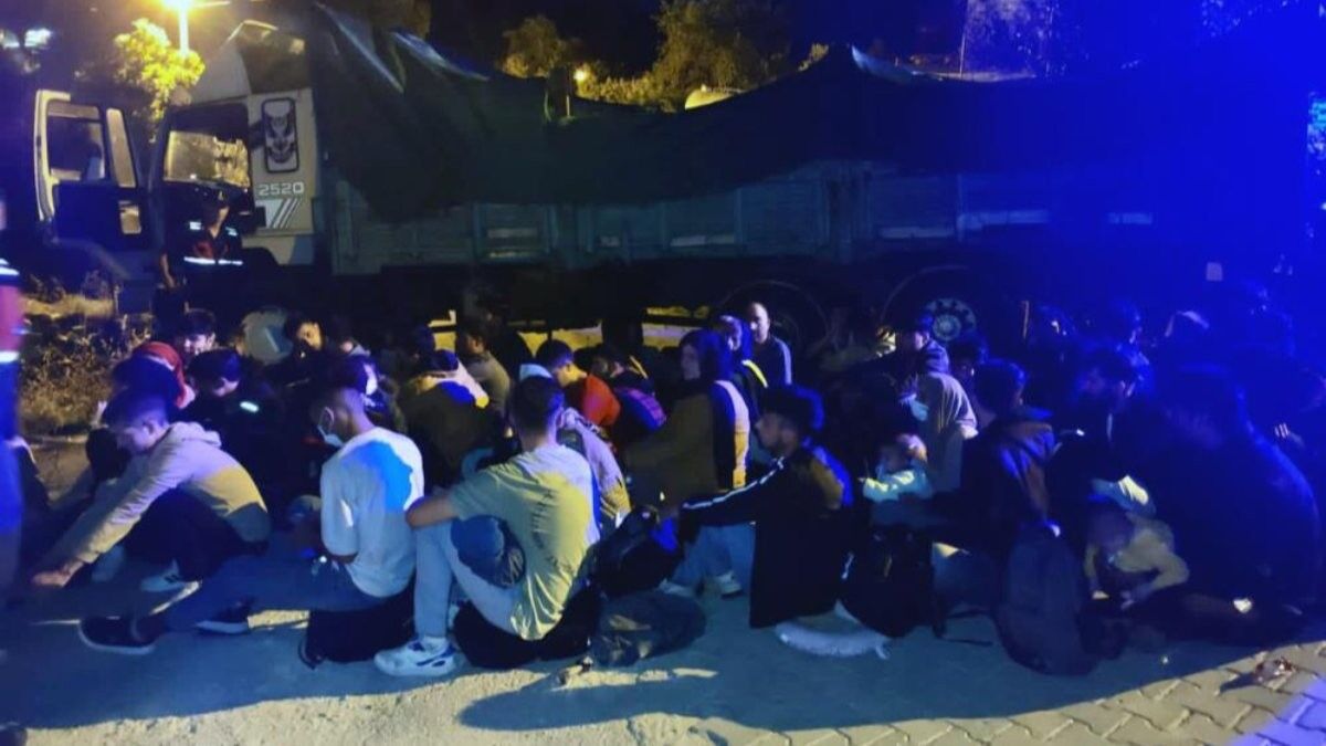 Kamyon içinde yapılan kontrolde, Muğla kıyılarından Yunanistan adaları veya İtalya’ya gitmek için kamyon kasasında 86 Afgan, 8 İran ve 2 Filistin uyruklu olmak üzere toplam 96 yasa dışı göçmen yakalandı.