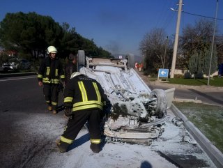 Karayolunda takla atan araç ters döndü -1 Karayolunda takla atan araç ters döndü -2