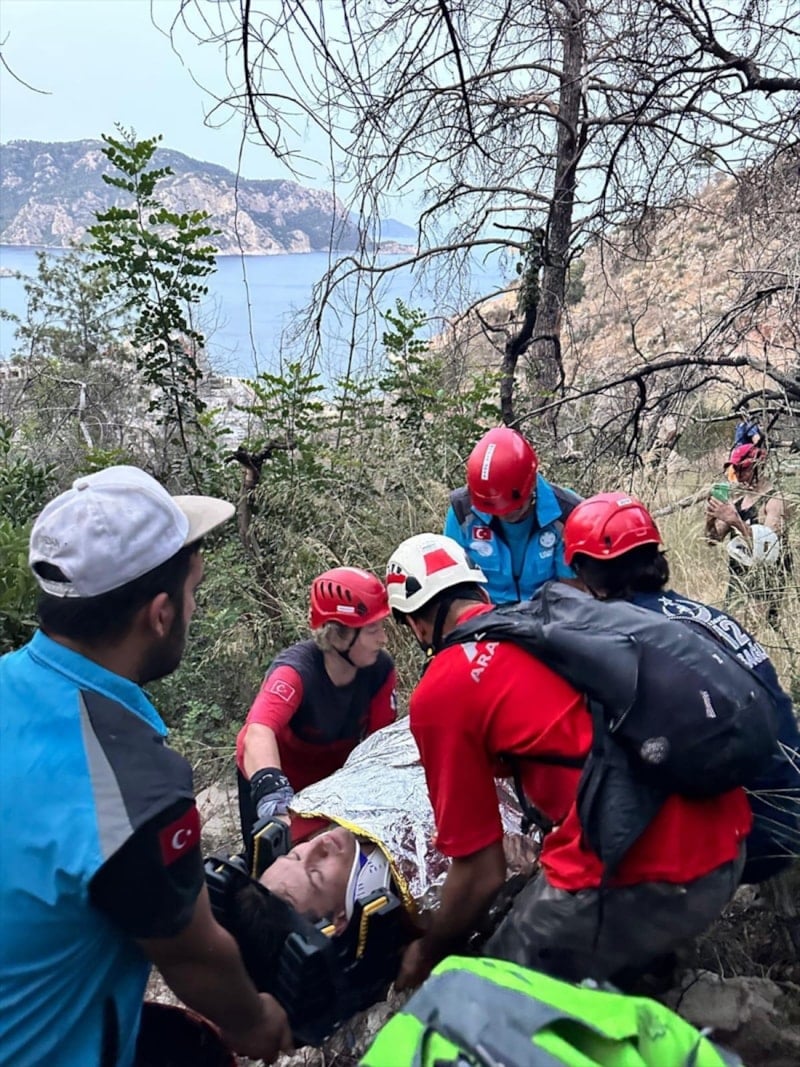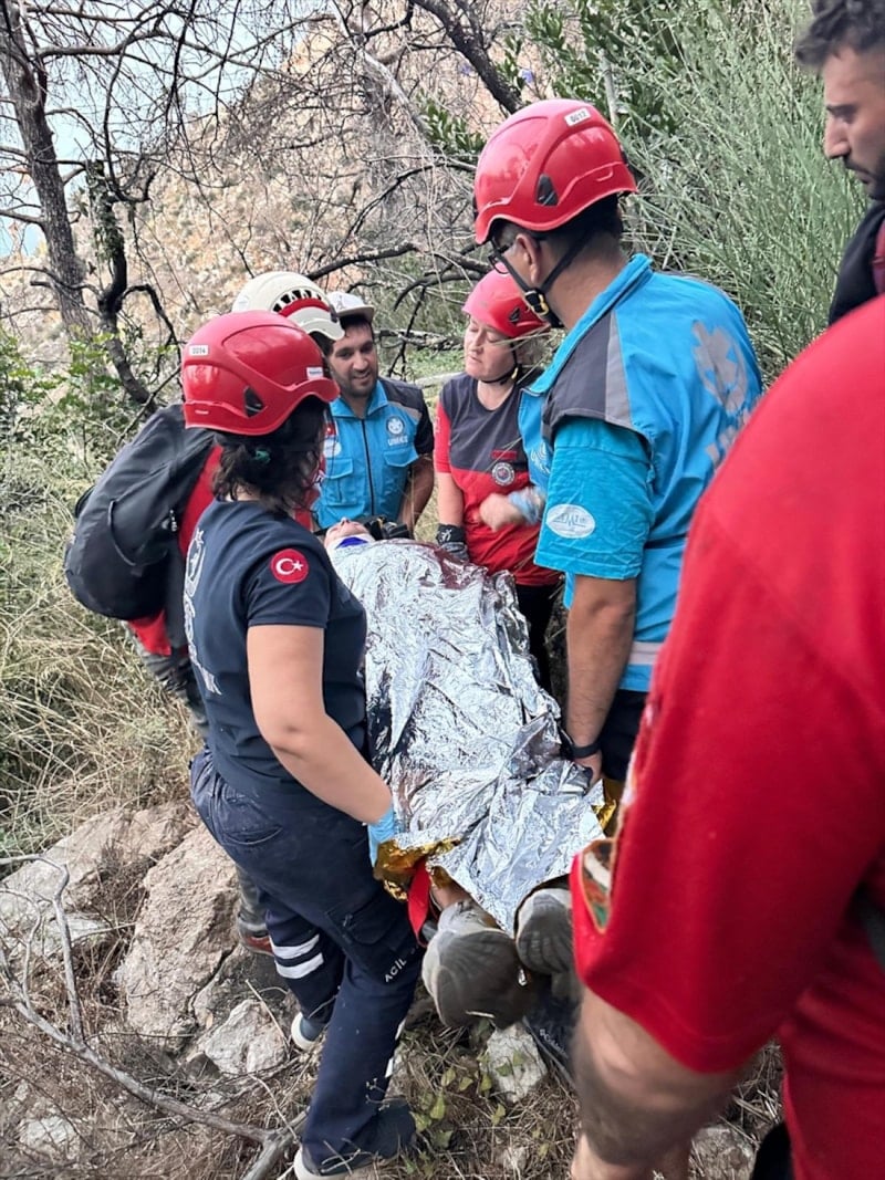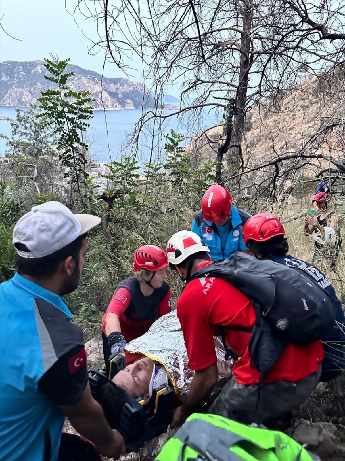 Susuz kaldıkları için baygın halde bulunan turistler sedyeye konulup 4 saatlik çalışmayla güvenli alana alındı.
