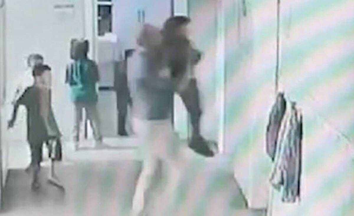 Görüntülerde, Mehmet Serkan G.'nin E.S.'yi koltuk altından tutup, diğer öğrencilerin gözü önünde sınıfın içine doğru fırlatması yer alıyor.