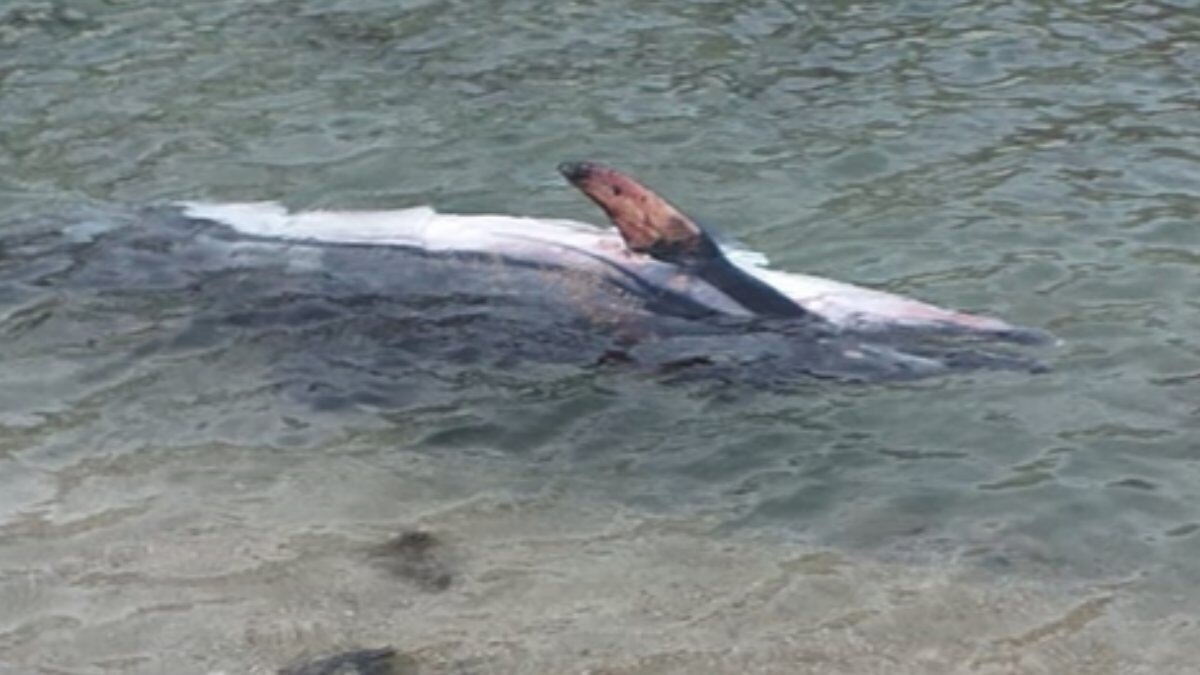 Muğla'nın Bodrum ilçesinin kıyısında telef olan yunus görüldü.