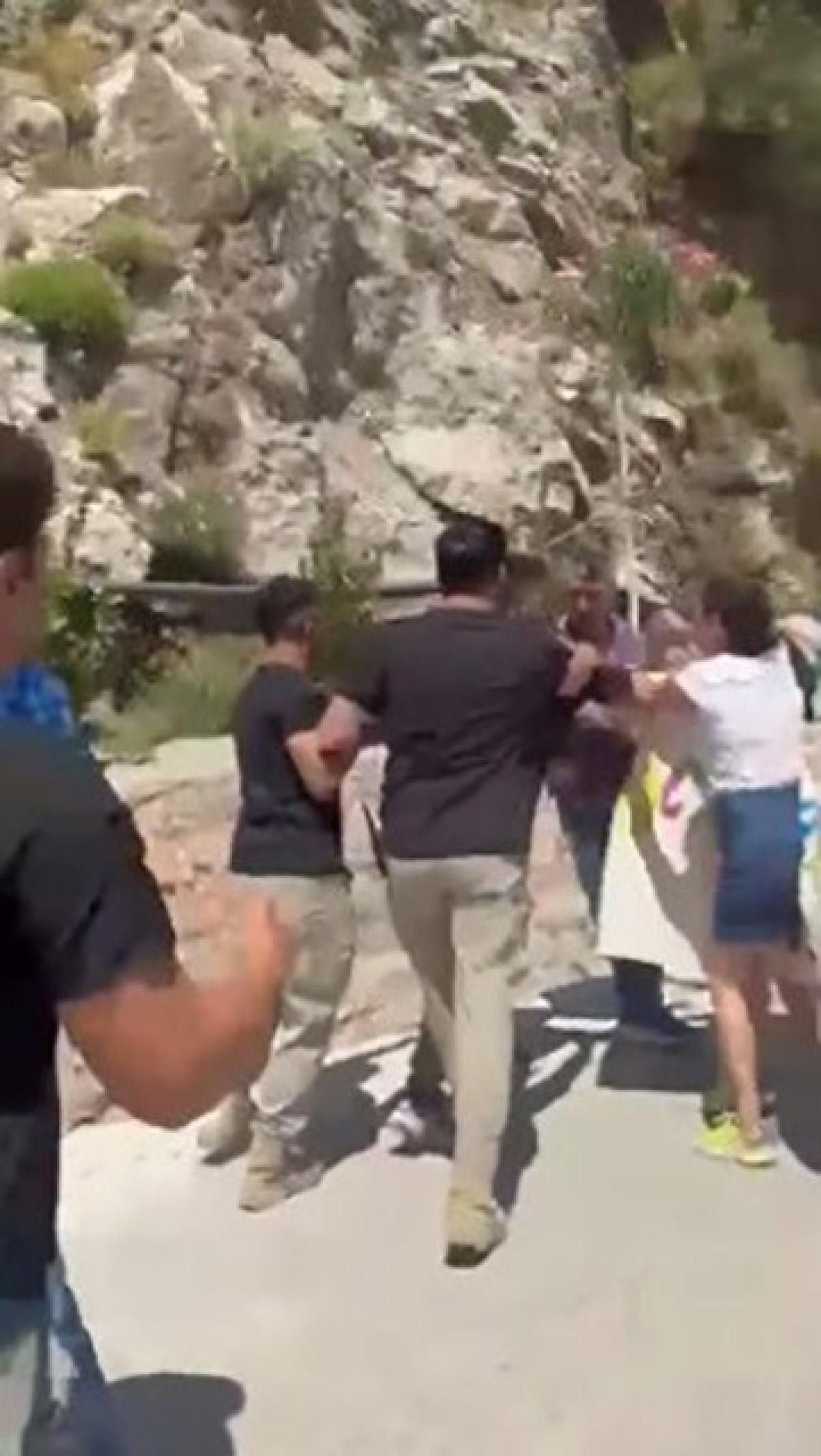 Yaşanan gerginlikte gruptakilerden biri güvenlik görevlisini tokatladı.