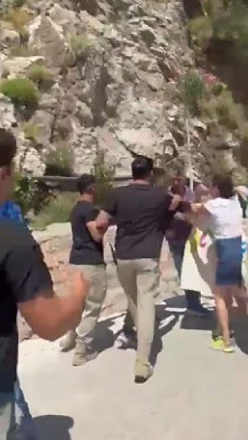 Marmaris ilçesindeki Kızılbük Termal Proje Sahası’na zorla girmeye çalışan grup, güvenlik görevlileriyle tartıştı. Cep telefonu kamerasına yansıyan görüntülerde bir kişinin görevliyi tokatladığı görüldü.