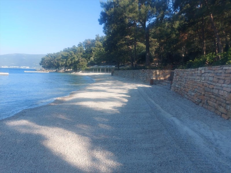 Muğla'nın Bodrum ilçesine bağlı Gölköy Mahallesi Demirbükü mevkiinde, villaların olduğu bir sitenin önündeki sahile beyaz kum dökülerek iş makinesiyle serildiği ihbarını alan Bodrum Belediyesi Zabıta Müdürlüğü ekipleri harekete geçti.