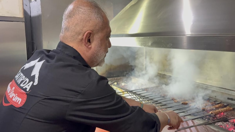 Kebapçı Hasan Şenses, "Çok değer verdiğimiz bir insan eşine sürpriz yapmak istedi. Çiçekçi komşumuzla beraber kebaptan buket yaptık" dedi.