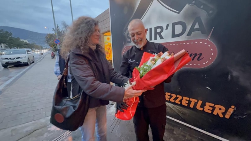 Sevgilisine kebap buketi yaptıran Alev Akgün de, "Sevgilimin en sevdiği yemek olduğu için böyle bir sürpriz hazırlamak istedim. Eminim ki çoğu kadının aklına gelmez" dedi.