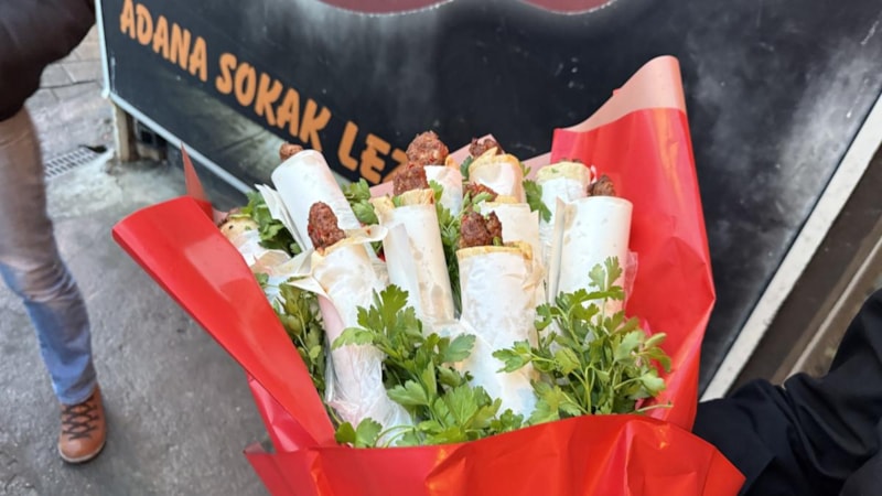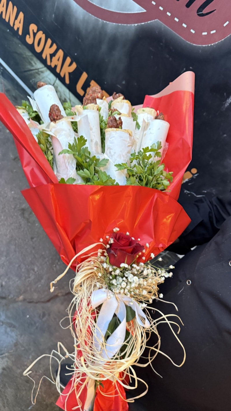 Alev Akgün'ün talebi üzerine çiçekçi Ceren Turan ile iş birliği yapan Şenses, Adana dürümlerini çiçek buketi şeklinde hazırladı.