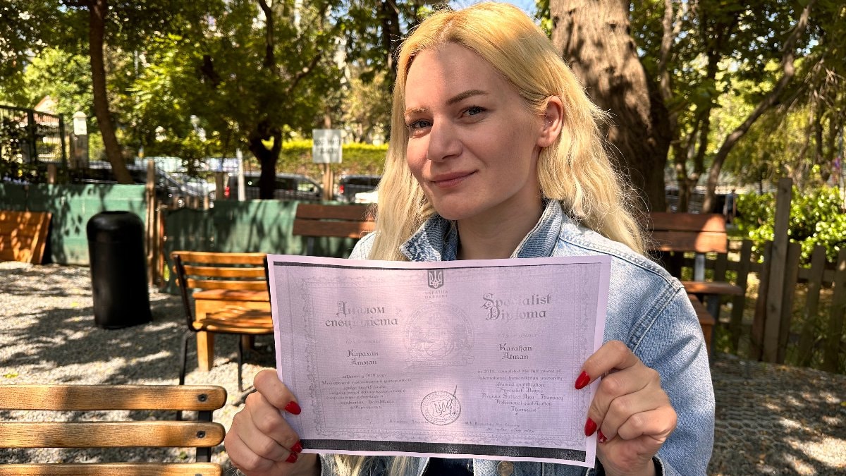 Bu belge benim eski eşimin diploması. Eczacılık adı altında aldığı diploması. Bu sahte bir diploma. Bu para karşılığı alınmış bir diploma. Araştırıldığı öğrenilebilir. Bu şahıs hayatında bir kez Ukrayna'ya gitmiş bir insan. Soruyorum hayatında bir kez Ukrayna'ya gitmiş olan bir insan. Hiç okul yüzü görmemiş bir insan bu diplomayı hak edebilir mi? Para karşılığında alınmış bir diploma. Eczacılık diploması.