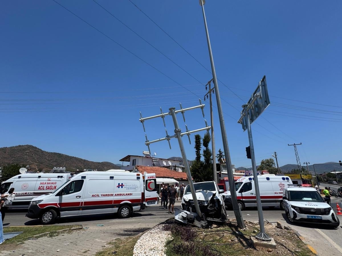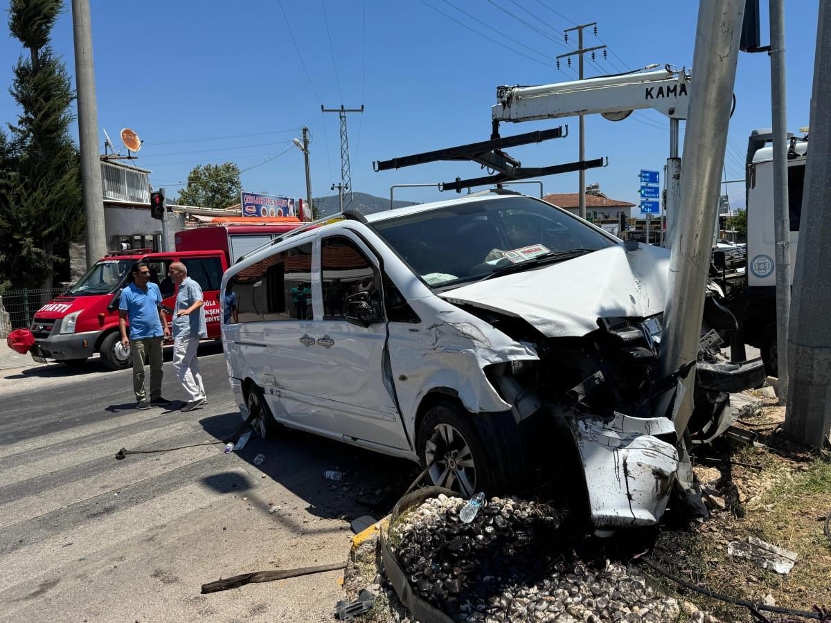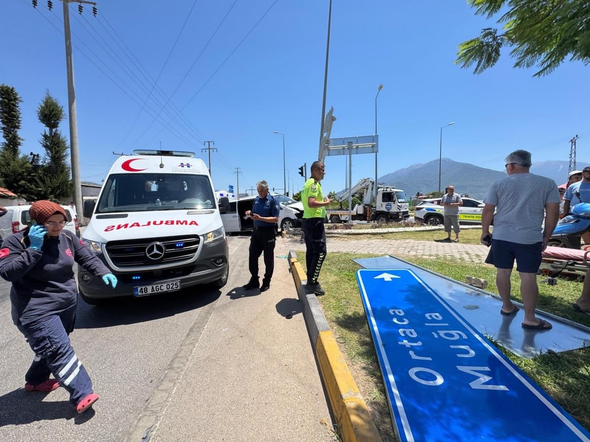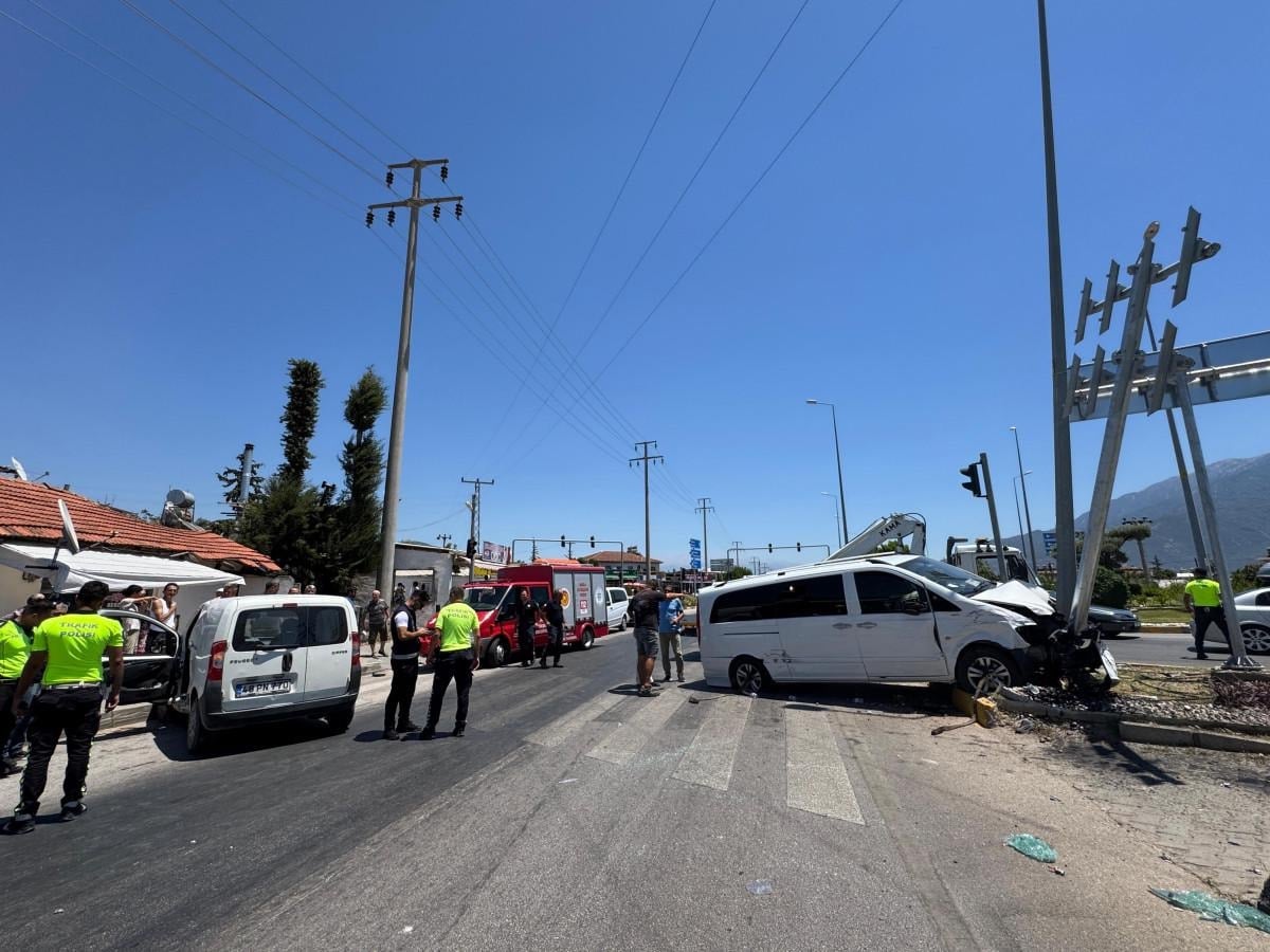 Muğla’nın Fethiye ilçesinde, 48 TZ 024 plakalı minibüsü kullanan Turgut A. ile 48 PN 770 plakalı hafif ticari aracın sürücüsü Meryem İ.’nin karıştığı trafik kazasında, iki araç Fethiye-Muğla kara yolu Çatalarık Kavşağı’ndaki trafik ışıklarında çarpıştı. Çarpışmanın etkisiyle savrulan minibüs, kavşaktaki yönlendirme tabelasına çarparak durabildi.