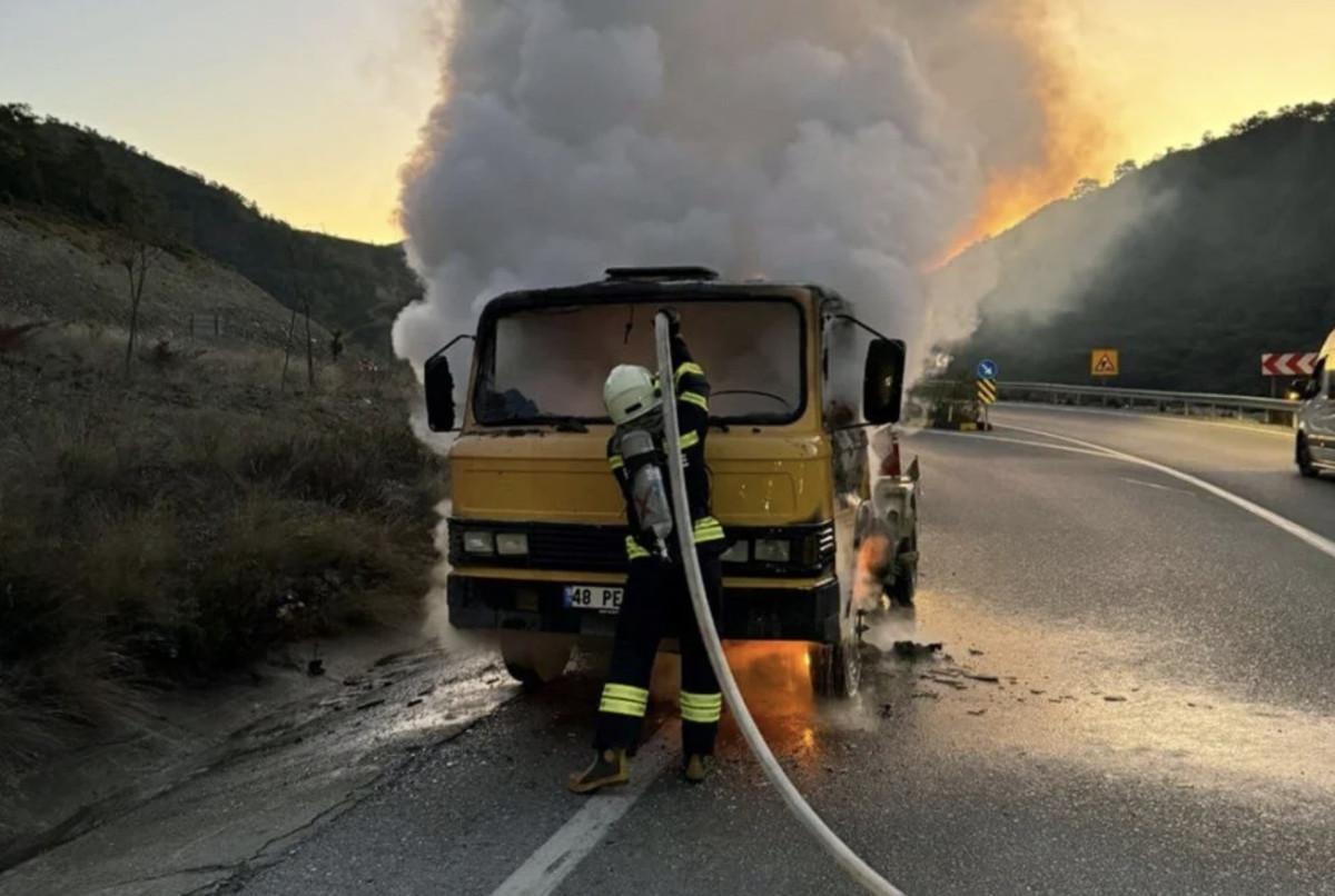 Muğla'nın Fethiye ilçesinde, vatandaşlar tarafından 112 Acil Çağrı Merkezi'ne Göcek Mahallesi'nde tankerinde mazot yüklü kamyonetin kupasının yanmakta olduğu bildirildi.