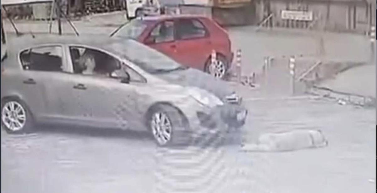 Köpeği ezen vicdansız sürücü köpeğin yaralanmasına sebep olurken, durmayıp yoluna devam etti.