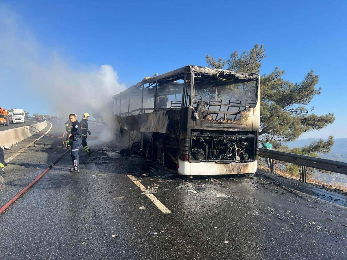 Yolcular otobüsten indirilirken, alevler kısa sürede tüm otobüsü sardı.