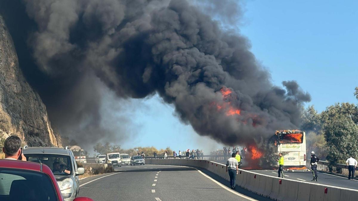 Saat 15.00 sıralarında, Çanakkale'den Muğla'nın Menteşe ilçesine giden yolcu otobüsünün motor kısmından alevler yükseldi.