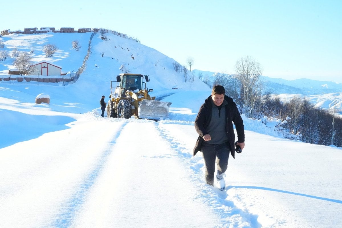 10 köy ve 24 mezranın bulunduğu Şenyayla-Üçevler grup köy yolunda yer yer 1 metreyi aşan kar kalınlığına rağmen ekipler, zorlu şartlar altında yol açma çalışmalarını tamamladı.