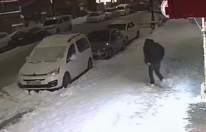 Öte yandan, çatıdan kar düştüğü ve gencin kaçmaya çalıştığı anlar ise güvenlik kamerası kayıtlarına yansıdı.