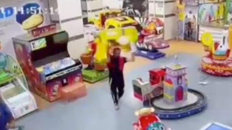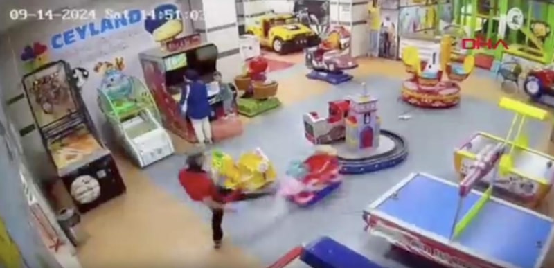 Kent merkezinde bulunan bir alışveriş merkezine giren madde bağımlısının, çocuk oyun alanında makinelere zarar vererek iş yerlerine saldırdığı anlar kameraya yansıdı.