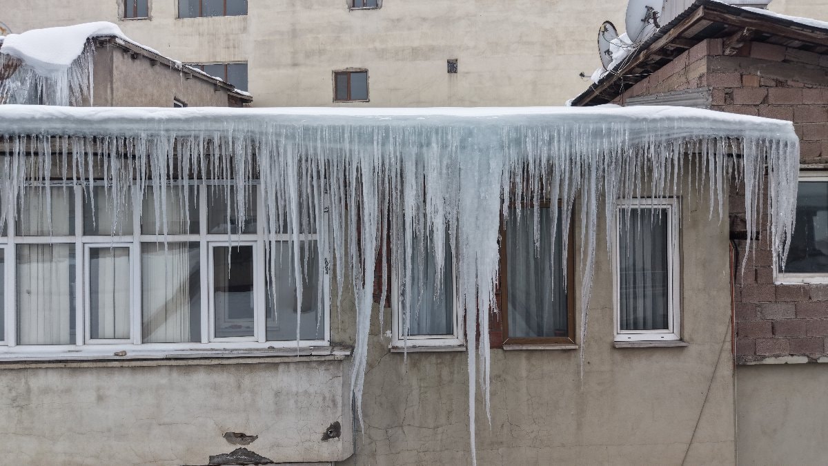 Dondurucu soğuklar nedeniyle özellikle çatı saçaklarında biriken kar ve eriyen suların donmasıyla dev buz kütleleri oluştu.