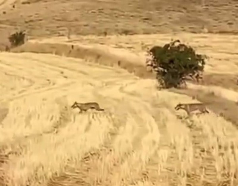 Çobanın cep telefonuyla kaydettiği görüntülerde, kurtların sürü halinde uzaklaştığı anlar yer aldı.