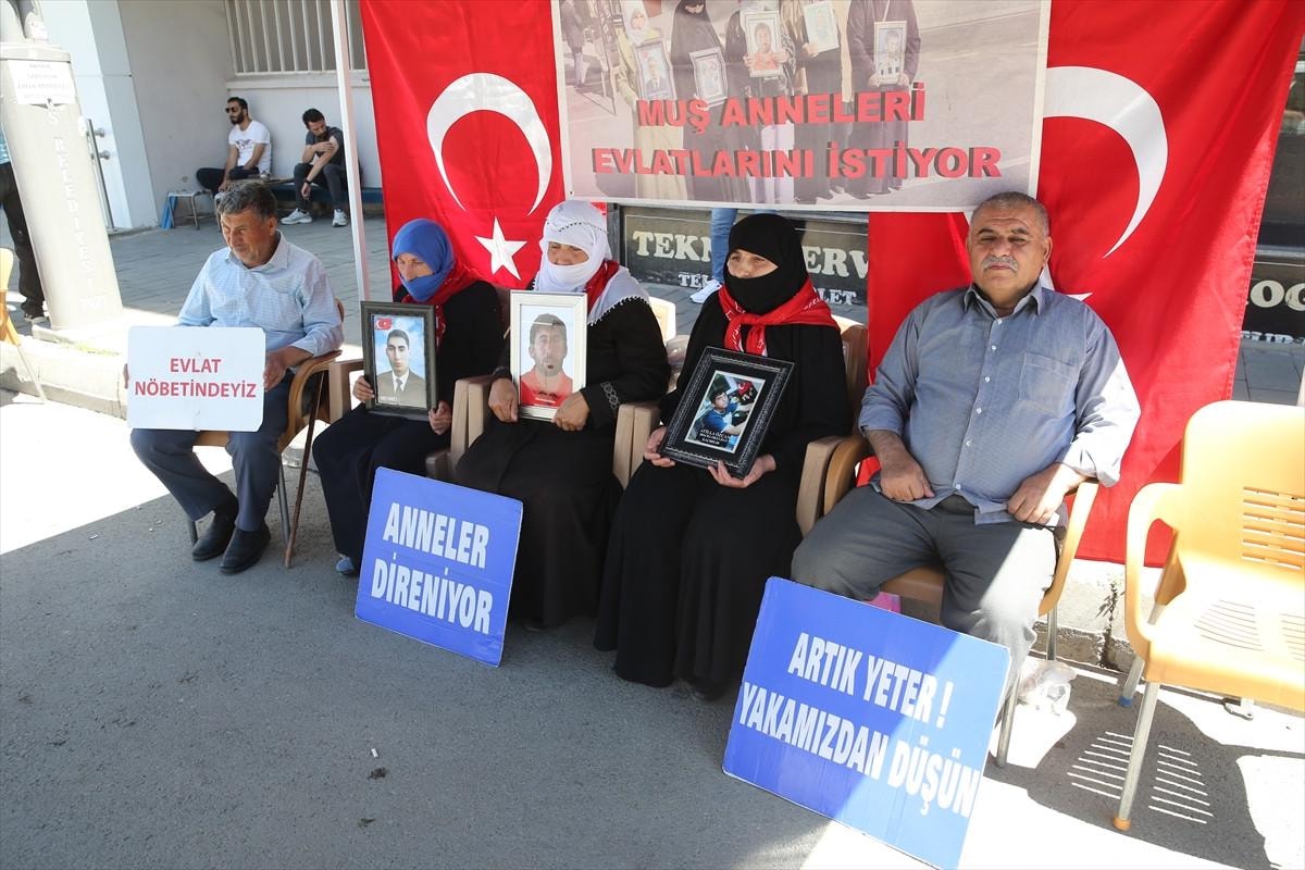 Muş'ta çocukları terör örgütü PKK tarafından kaçırılan aileler, DEM Parti İl Başkanlığı binası önünde eylemlerine devam etti.