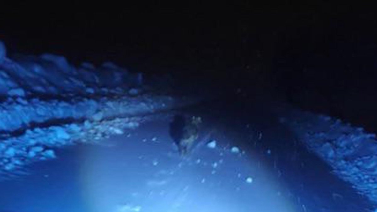 Elinde fenerle kurdu görüntülemeye çalışan Fuat Bozkurt, başka bir kurdun yaklaştığını görünce arkadaşıyla birlikte panikleyerek otomobile doğru koşmaya başladı.