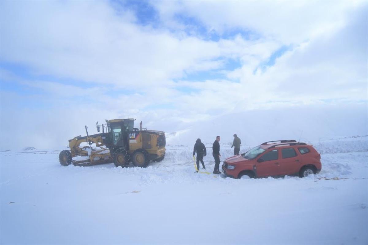Öğlen saatlerinde ise Çavuştepe mevkiinde rüzgar enerjisi santralinde güvenlik görevlisi olarak çalışan 2 kişi, nöbet dönüşünde araçları ile kara saplanarak mahsur kaldı.