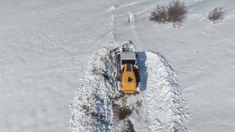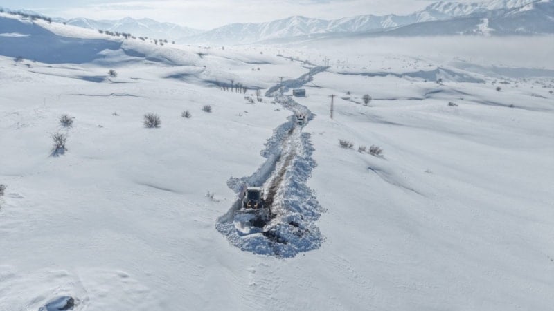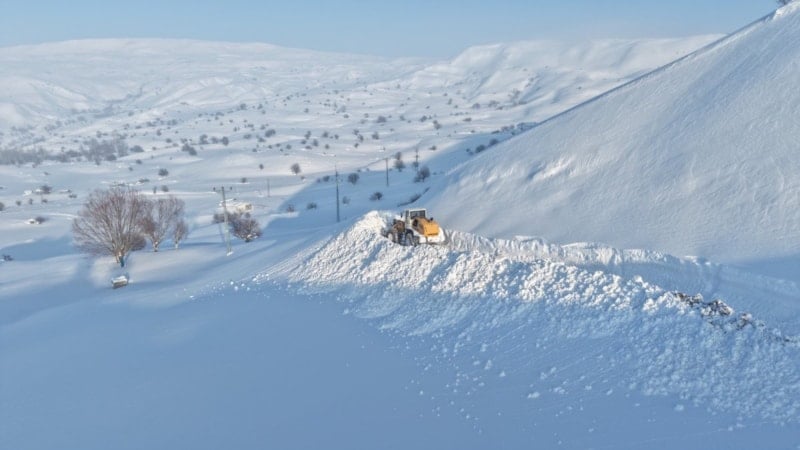 Yoğun kar ve fırtına nedeniyle kapanan mezra yolunu açmak için bölgeye iş makineleri sevk edildi. Yer yer 4 metreyi bulan kar kalınlığına rağmen ekipler, yaklaşık 4 kilometrelik yolu 2 gün süren aralıksız çalışmayla ulaşıma açtı.