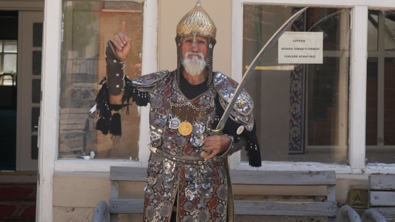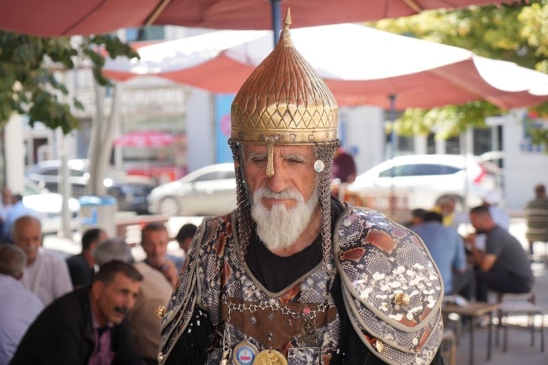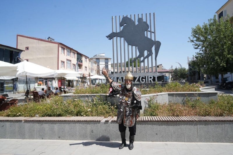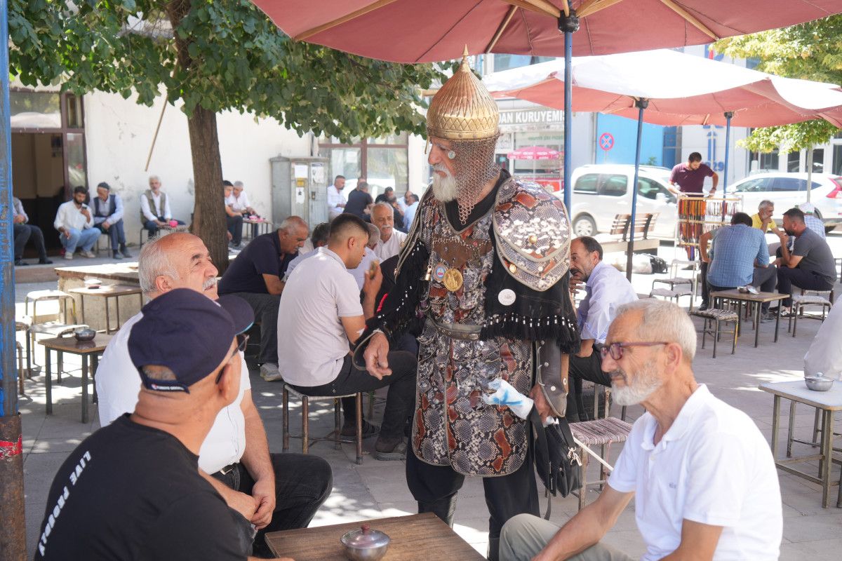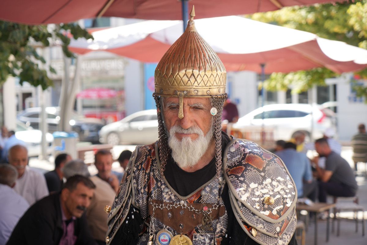 1974'te askerlik görevini Malazgirt'te yapan Keskin, her yıl ilçeye gelerek kendisine özel dikilen Selçuklu kıyafetiyle kutlamalara katılıyor.