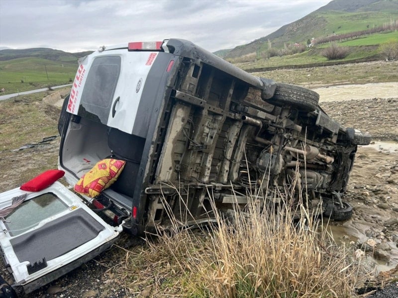 Muş-Bulanık kara yolunun Korkut Karakale mevkisinde, 49 ABM 490 plakalı yolcu minibüsü, Muş’tan Bulanık yönüne ilerlediği sırada sürücünün kontrolü kaybetmesiyle yoldan çıkarak dere yatağına devrildi.