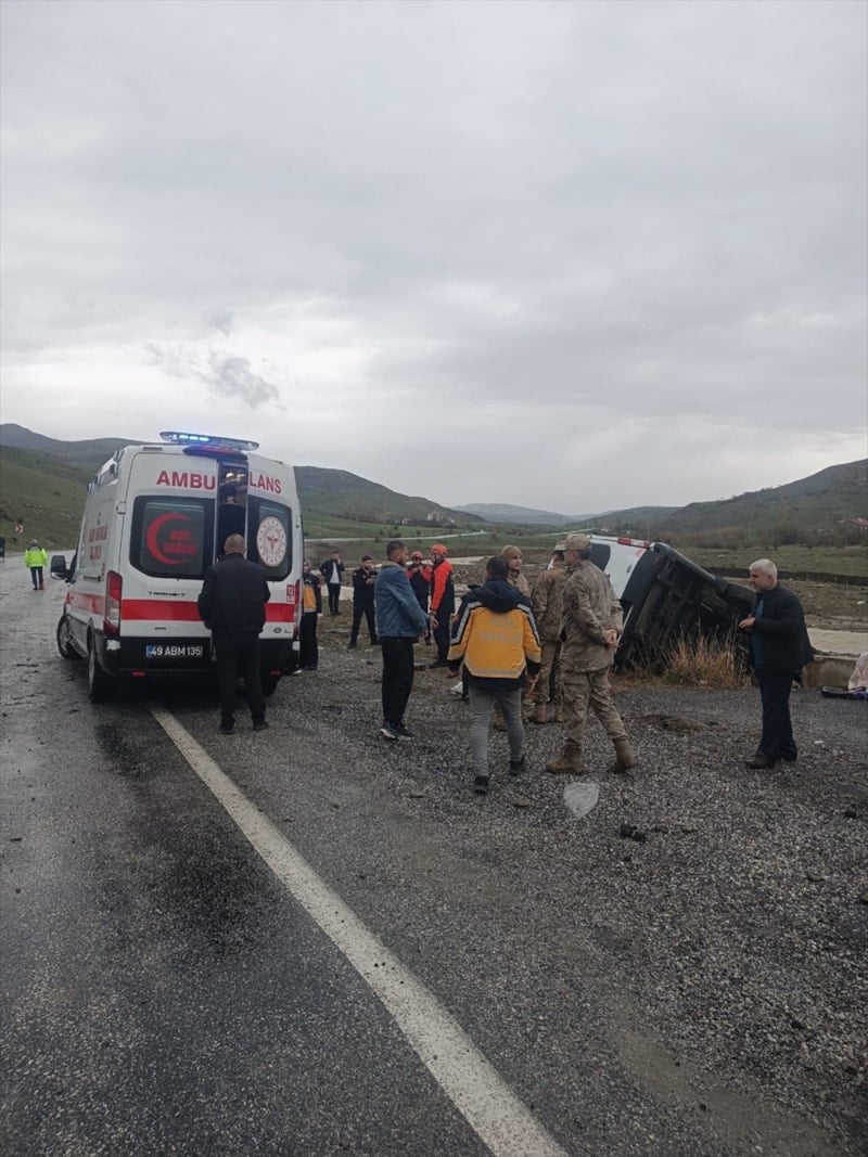 Muş-Bulanık kara yolunda kontrolden çıkan yolcu minibüsünün dere yatağına devrilmesi sonucu 16 kişi yaralandı.