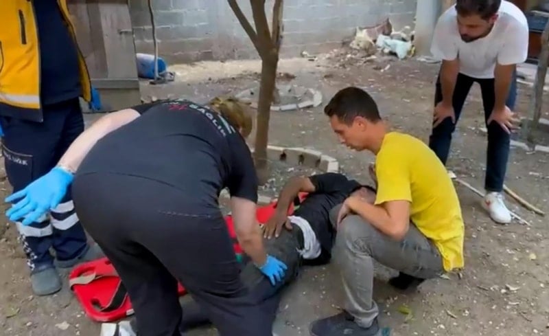 Toprak zemine düşerek bacağı kırılan Cuma Y., sağlık ekibinin müdahalesinin ardından ambulansla hastaneye götürüldü.
