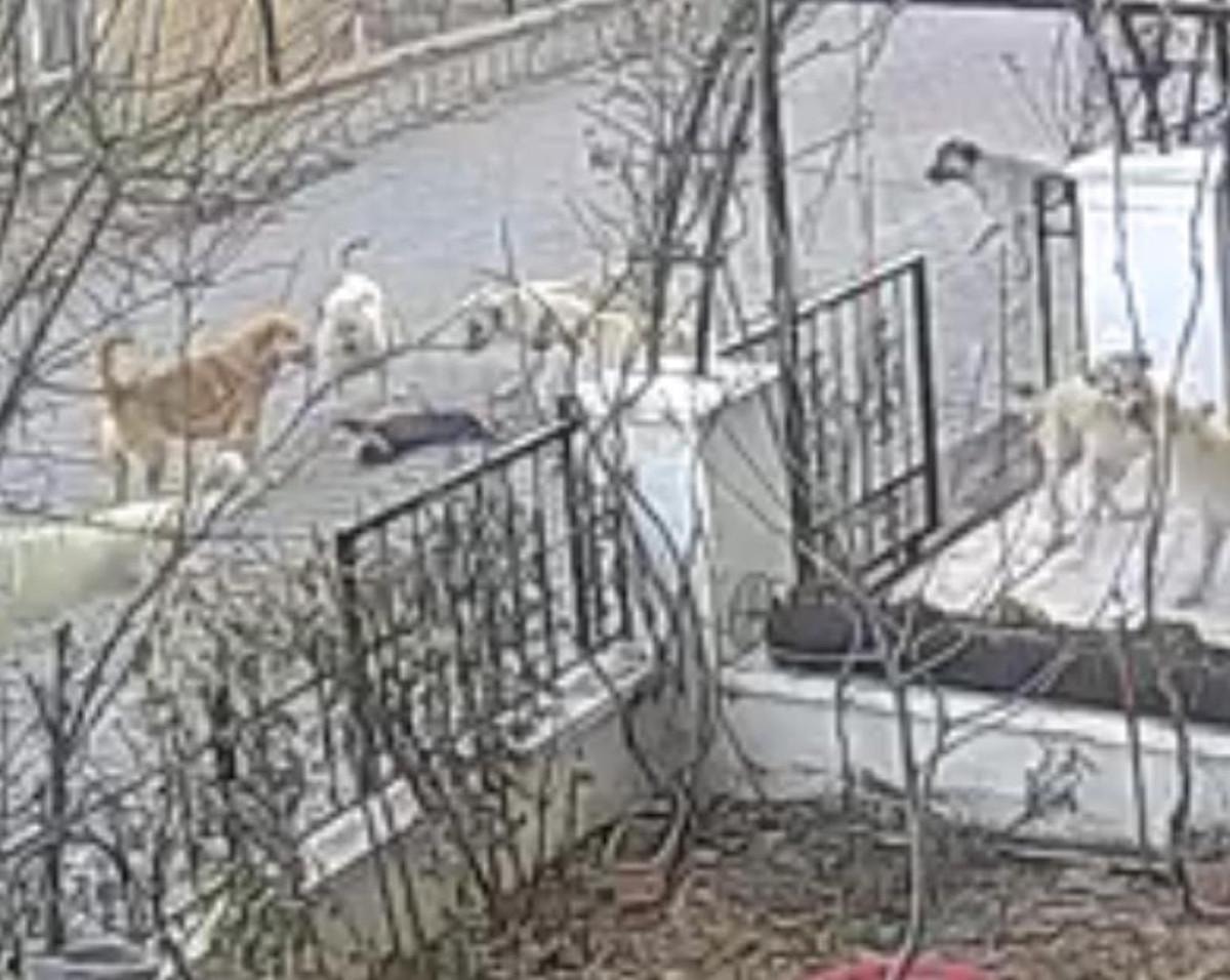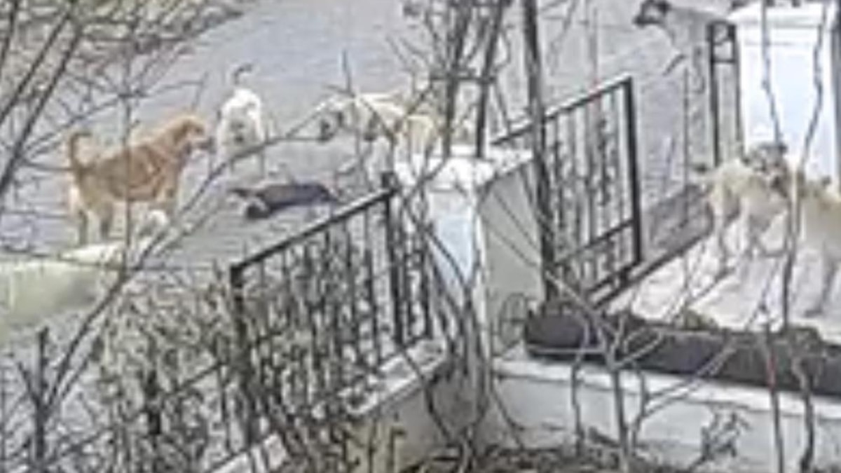 Görüntülerde, köpeklerin kediyi ortalarına alıp saldırdıkları ve ardından ağızlarında çekiştirdikleri açıkça görüldü.