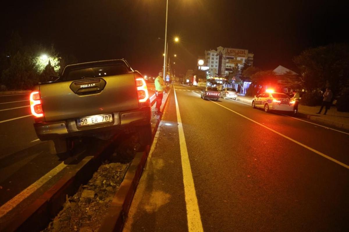 Beğendik Kavşağı'ndan "U" dönüşü yaptıktan sonra direksiyon hakimiyetini kaybeden sürücü, orta refüje çıktı.