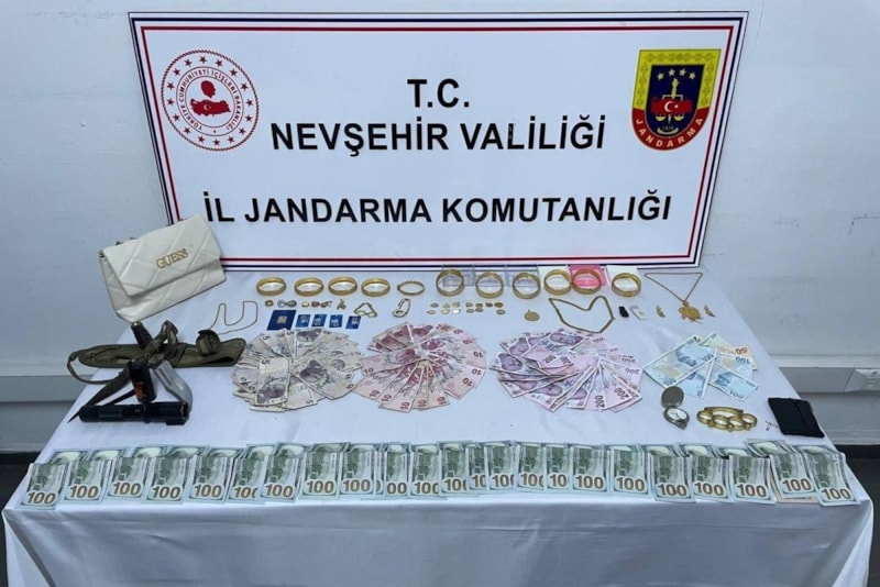 Coşkun K. jandarma ekiplerince Hatay'da evine düzenlenen operasyonla gözaltına alınırken, evde yapılan aramada 2 bin 550 dolar, 4 bin 780 TL, 7 adet altın bilezik, 3 adet altın kolye, 2 adet altın küpe, 2 adet altın yüzük, 11 adet çeyrek altın, 2 adet yarım altın, 14 gram altın, 1 adet büyük altın, 1 adet küçük altın, 2 adet flash bellek, 1 adet kasatura, 1 adet tarihi eser niteliğinde kama, 1 adet cep saati ele geçirildi.
