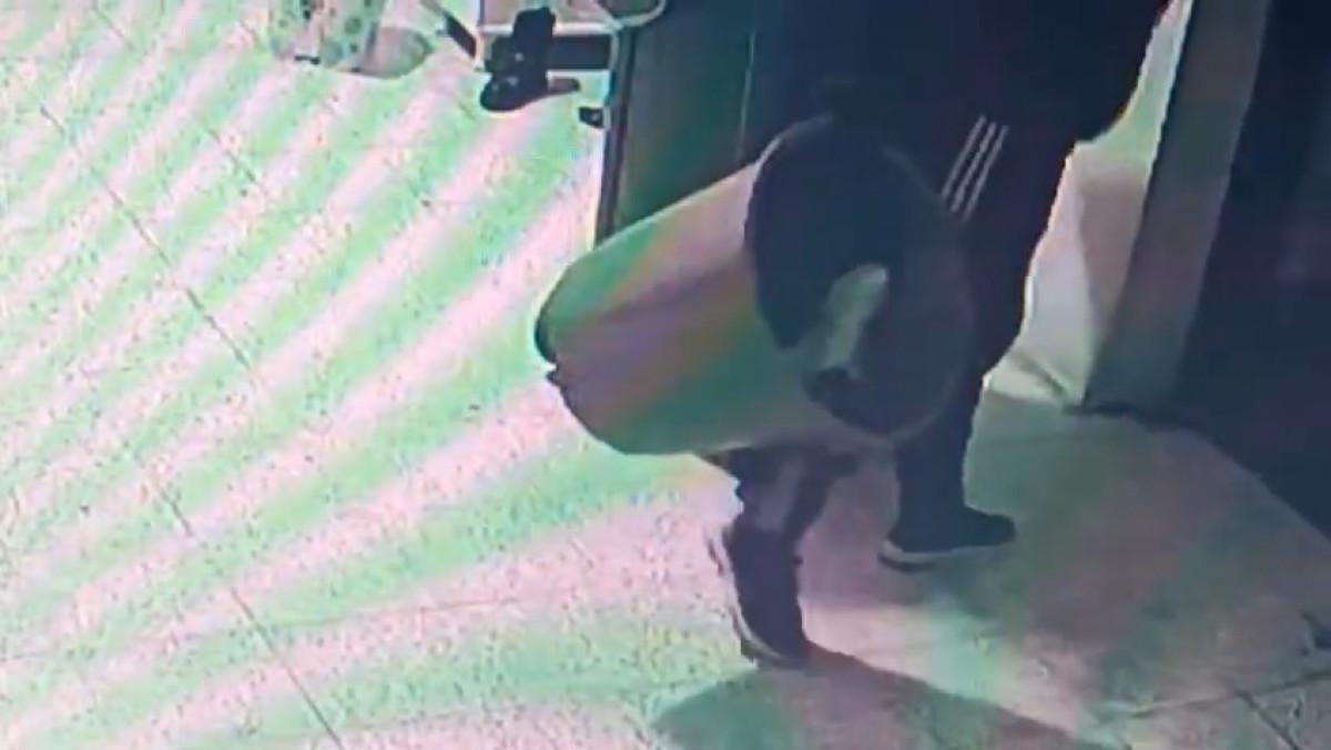 Bir süre apartmanın 1. katında dolaşan şahıs, daha sonra bir evin önünde bulunan ayakkabıları bir poşet içerisine koyduktan sonra yanında getirdiği çöp arabasına sakladı.
