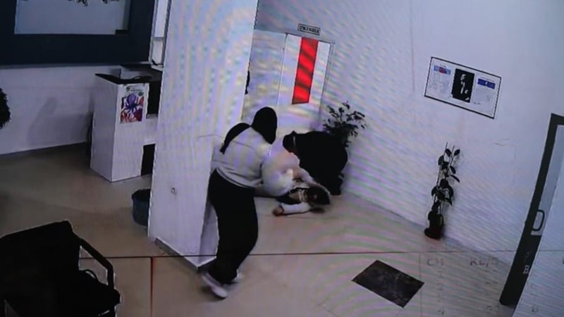 S.N.Ş.'nin yaralı halde koşarak bir işletmeye sığındığı ve sağlık ekiplerinin yaptığı müdahale güvenlik kamerasınca kaydedildi.