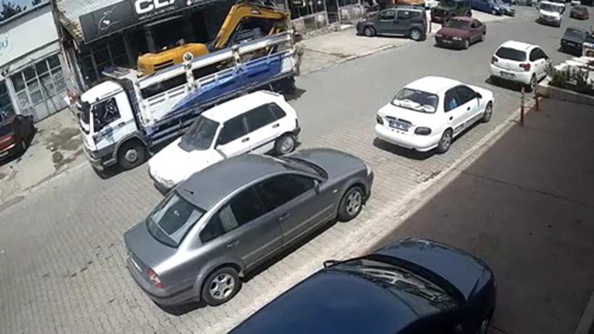 Nevşehir merkez Yeni Sanayi Sitesi'nde iş makinası yüklü N.K.'ye ait park halindeki kamyon, freni boşalınca geri geri hareket etti, arkasında bulunan 4 araca çarparak durabildi.